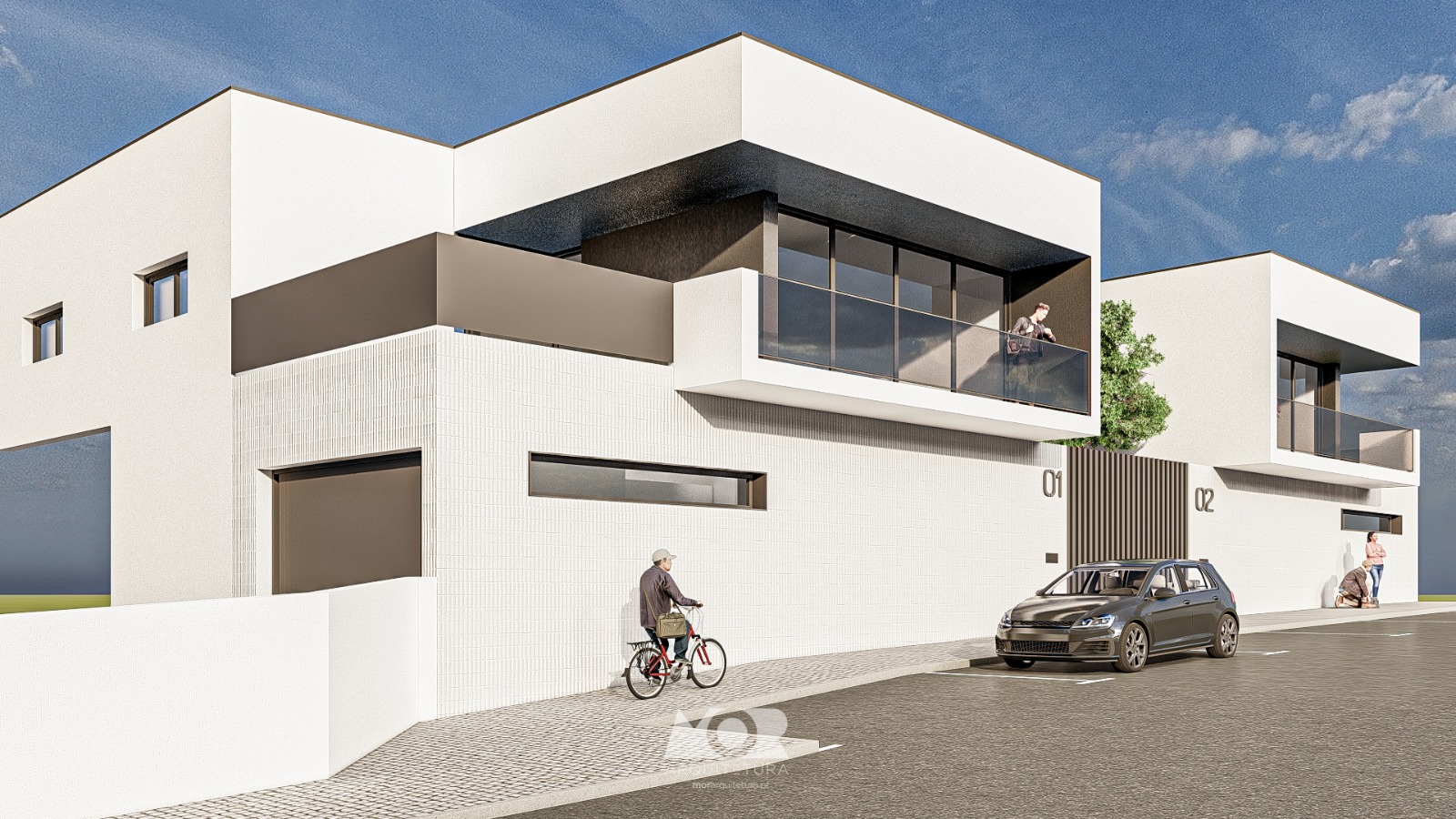 Inserida no centro urbano, este projeto de moradia bifamiliar redefine a vida em comunidade, garantindo simultaneamente a máxima individualidade e privacidade para cada unidade. Desenvolvido com uma linguagem arquitetónica contemporânea e sofisticada, o design exterior robusto, evidenciado pelo uso de materiais contrastantes , estabelece um limite visual, criando um refúgio sereno. Cada moradia é distribuída por dois pisos, oferecendo uma organização funcional: uma área social ampla e luminosa que se liga harmoniosamente ao exterior privado, complementada por três quartos bem dimensionados e uma garagem integrada. Este é um investimento no conforto, na estética moderna e na qualidade de vida, no coração da cidade, onde a individualidade é verdadeiramente um luxo garantido.