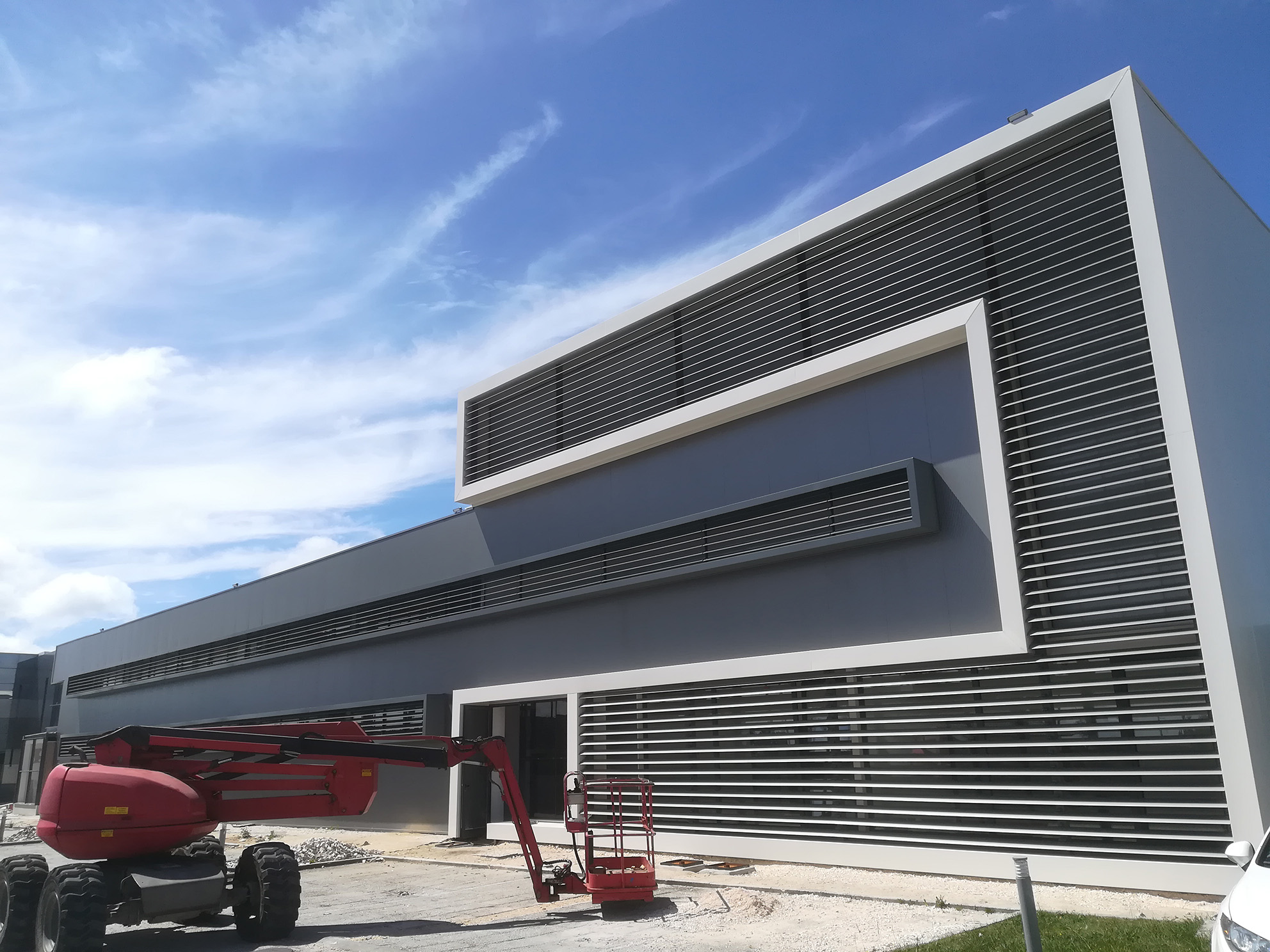 No que respeita ao alçado pretendeu-se criar um edifício de linhas simples que respondia adequadamente à pré-existência, integrando-se harmoniosamente com as instalações existentes do Grupo Socem.